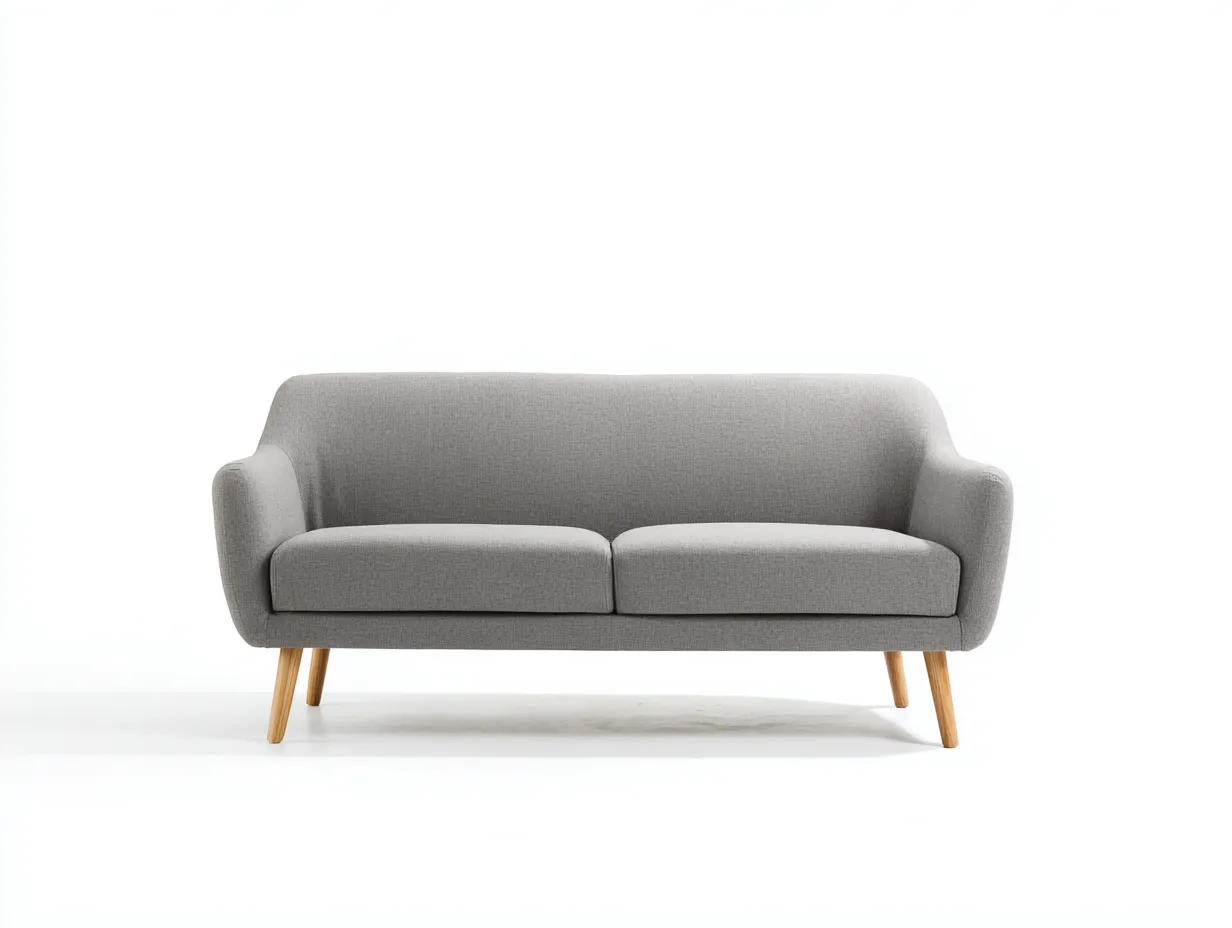 Sofá de 2 plazas 182 x 89 x 81 cm - tapizado gris claro y patas de madera clara - estilo contemporáneo suave - con cojines laterales y brazos curvos integrados