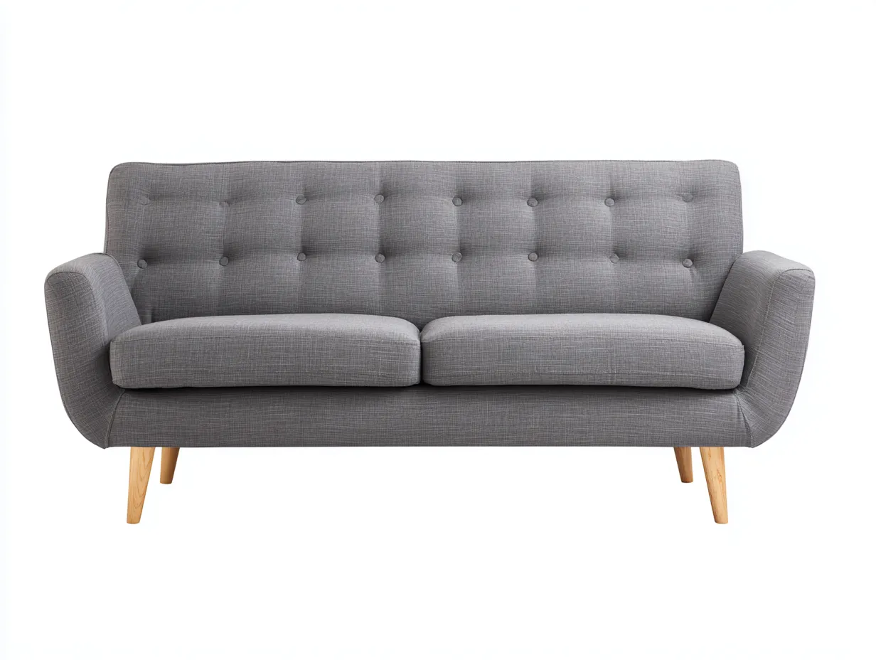 Sofá de 2 plazas de tela gris claro con respaldo capitoné y patas de madera 168 x 84 x 86 cm - para salón - estilo escandinavo contemporáneo