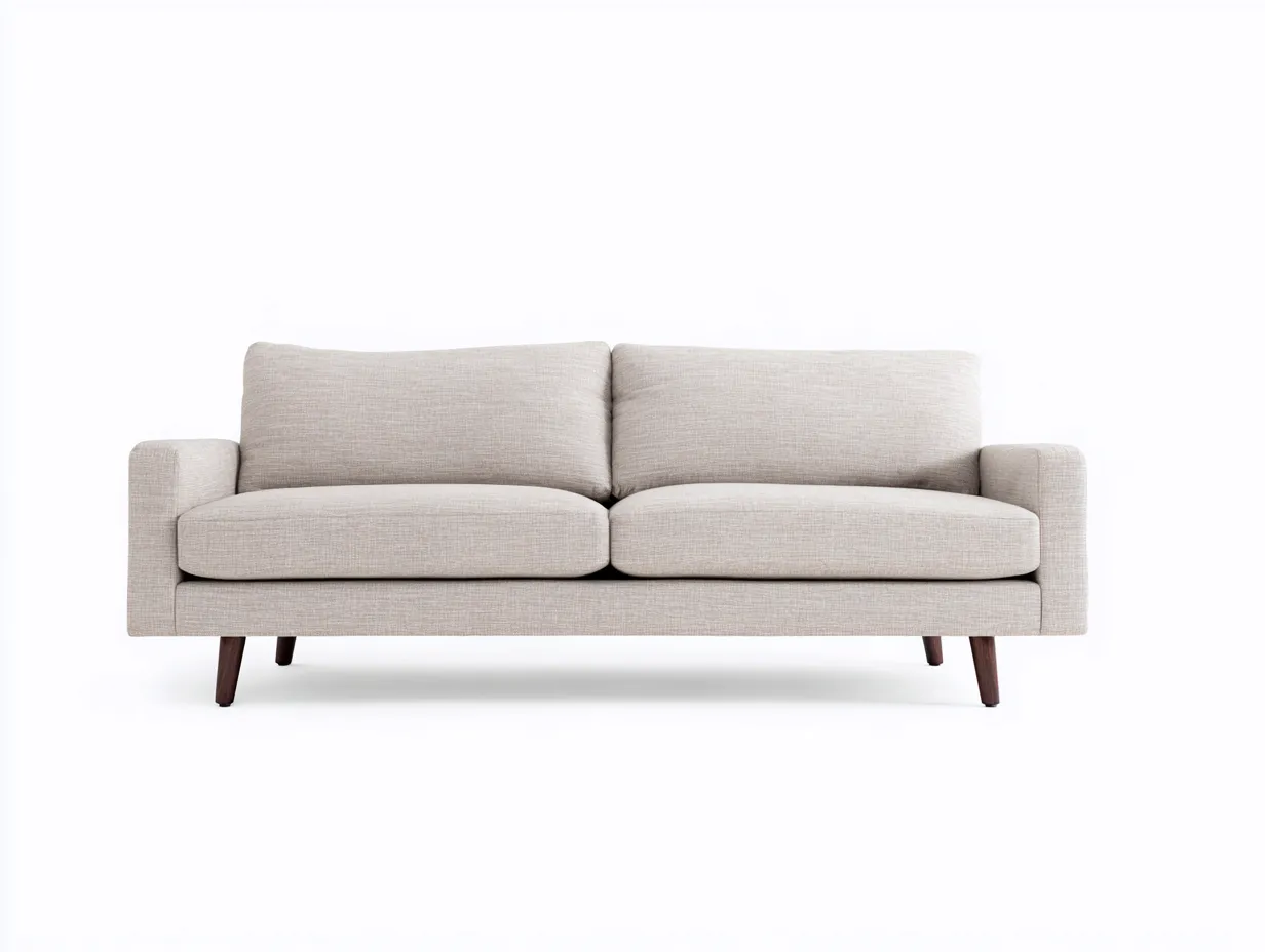 Sofá de 2 plazas 178 x 87 x 82 cm - tapizado beige claro y patas de madera oscura - estilo contemporáneo minimalista - con líneas rectas y cojines amplios