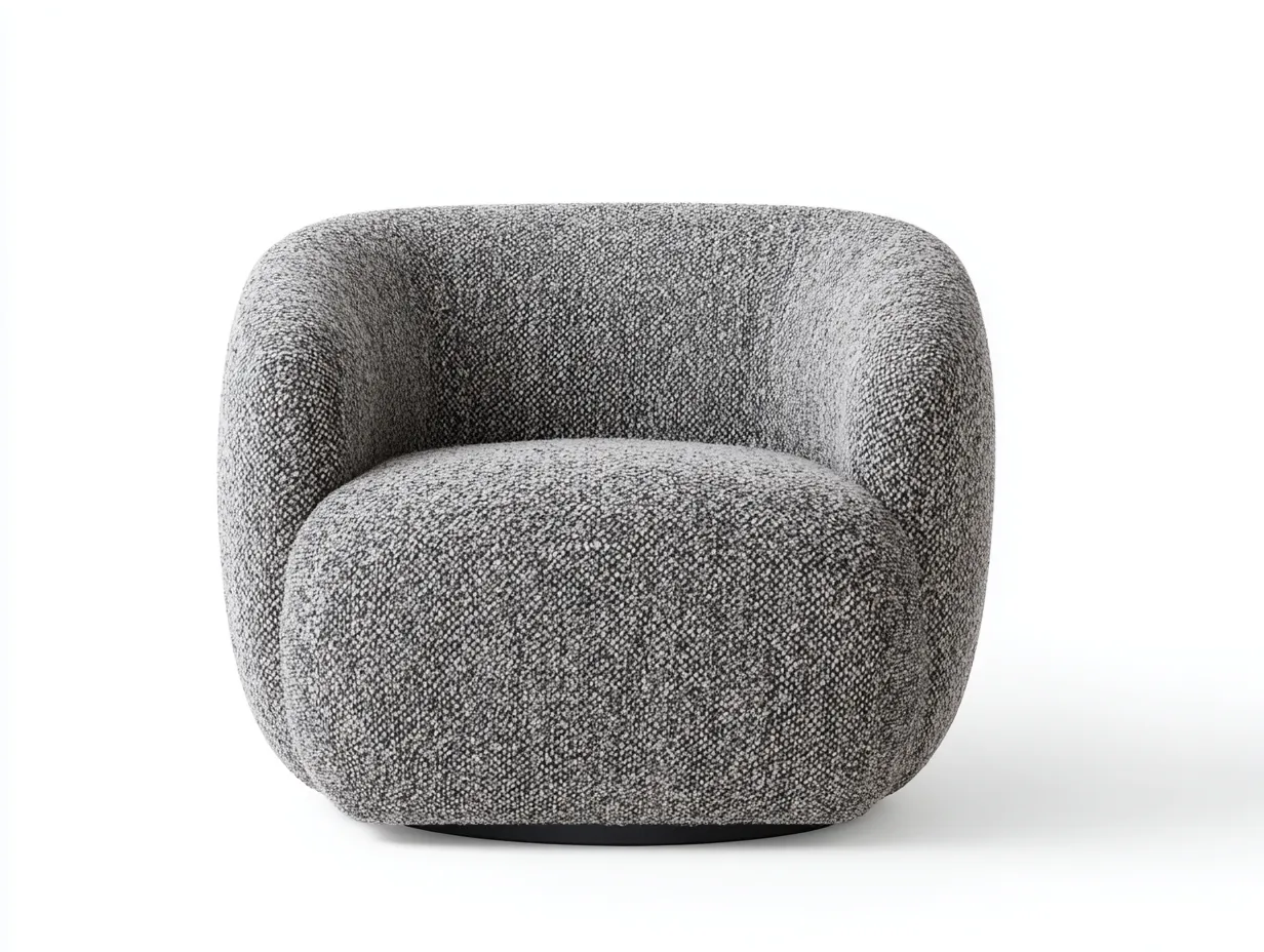 Este sillón de tela bouclé gris jaspeado aporta al salón una presencia suave, escultural y muy actual. Su diseño envolvente de formas redondeadas crea una silueta continua que transmite calma visual y una sensación inmediata de confort. El acabado gris jaspeado añade relieve y profundidad al tejido. Gracias a su asiento amplio y a su respaldo curvado, este modelo favorece una postura más relajada en el uso diario. Su formato compacto pero generoso lo convierte en una pieza ideal para un rincón de lectura, una zona de conversación o como acento decorativo dentro de un salón contemporáneo, cálido y bien equilibrado.