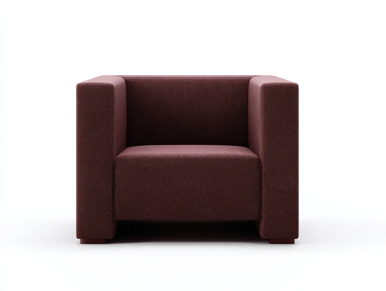 Este sillón de tela burdeos destaca por su silueta cúbica definida y su estilo claramente contemporáneo, perfecto para estructurar un salón con personalidad. Su diseño monobloque resalta volúmenes marcados, reposabrazos gruesos y un asiento profundo que crean un equilibrio logrado entre presencia visual y comodidad de uso. El tono burdeos aporta una nota cálida y sofisticada, fácil de combinar con tonos neutros, madera oscura o acabados metálicos discretos. Gracias a sus líneas simples y a su formato compacto, este sillón encuentra naturalmente su lugar en un rincón de lectura, junto a una mesa de centro o como asiento auxiliar elegante en un espacio de vida moderno. Su estética arquitectónica lo convierte en una pieza destacada sin exceso decorativo.
